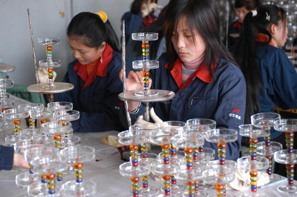 2008年金融危機后開始整合壯大,目前全縣共有玻璃器皿生產企業38戶,年產值超過21億元,產值占全縣工業總產值的40%,產量約占全國人工吹制玻璃器皿總量的45%,其中人工吹制高腳杯約占全國總量的80%,成為在國內具有主導地位、在國際市場具有一定影響力的玻璃器皿產業集聚區。產品涵蓋酒具、茶具、咖啡具、蠟臺、風燈、水升、果盤、花瓶、糖盒、工藝品等,形成了初級生產、深度加工、精品開發的產業格局。