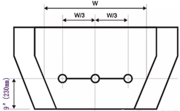 (2)水平方向:三根熱電偶距離料盆230毫米左右,中間一根熱電偶處在料道中心線,以它為準,距左右二側熱電偶的距離為該磚寬的1/3處。見圖四:
