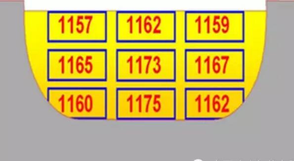 中部溫度1173與左1165右1167之間的溫差;共二點,