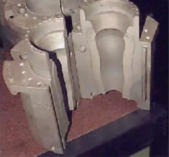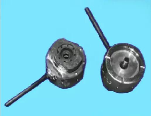 此工藝悶頭也有二個作用。一是將撲氣”的壓縮空氣通過悶頭內的通孔提供一個路徑,二是它在初模的上方與初模組成完整的初模腔,以形成初模料坯狀。