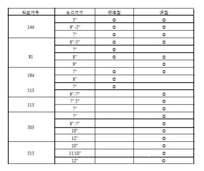 2.2.5規范使用前爐,按前爐規格,供料機型號選用規范SPOUT(盆磚):