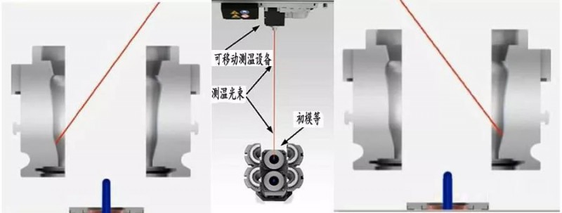 隨著制瓶機的高速化以及輕量瓶的普及,對初模的溫度控制要求越來越高,人工測量顯得跟不上其機速,人工測量也不能準確定位。最近EUCHER Emhart公司發明出自動遠紅外測初模溫度系統。