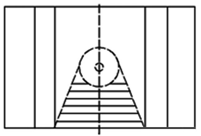 國(guó)外發(fā)明了一種供料道底部泄料裝置,它在供料道底部有一道槽溝,槽溝中央有一個(gè)泄料孔,見圖一,或在供料道底部有一道弧形裝置,弧形裝置頂端有一個(gè)泄料孔見圖二。不管是圖一還是圖二中的料槽磚,其內(nèi)側(cè)底角不要形成直角,最好是弧形斜面。這樣可以去除死角,使料道底部的臟玻璃移至放料點(diǎn)。變質(zhì)或被腐蝕物污染的玻璃流進(jìn)料盆之前,先進(jìn)入這道槽溝里從泄料孔底部排泄掉,從而有效解決因侵蝕物進(jìn)入料盆而產(chǎn)生的條紋。