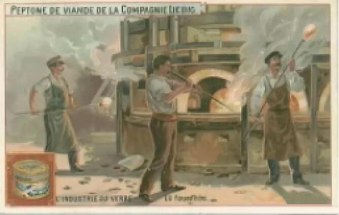 圖一 當(dāng)年人工無模具吹制生產(chǎn)及玻璃瓶