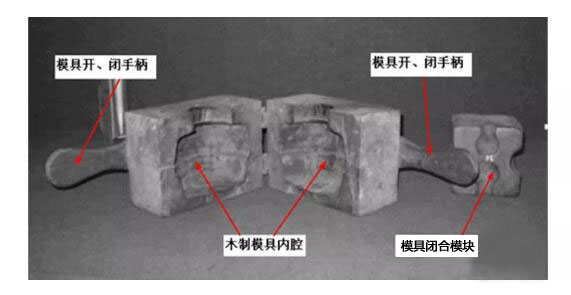 為了使玻璃瓶外形統(tǒng)一,當(dāng)年玻璃行業(yè)先人們用陶土揉捏成玻璃瓶外形然后燒制定型,也有在石頭上雕成玻璃瓶形狀用它們作為模具造成玻璃容器。但是陶制的容易破裂而石頭的加工不易,人們又想到使用木材使用木頭制造模具,木材加工方便可用水冷卻,它得到了很長時(shí)間的運(yùn)用。據(jù)使用過木頭模具的老工人回憶,我國在民國時(shí)期使用木頭模具是較為普遍。他們在使用時(shí)在其木頭模腔內(nèi)墊襯一張報(bào)紙,損壞后再換一張。模具熱后用水淋一下降溫。可惜當(dāng)年的木頭模具實(shí)物未能保留下來。圖二是國外玻璃工廠所留下的木制玻璃瓶模具。