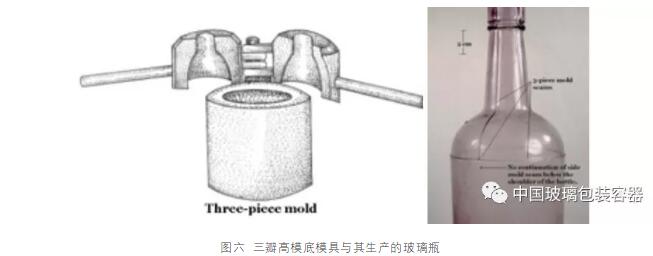 圖六 三瓣高模底模具與其生產(chǎn)的玻璃瓶