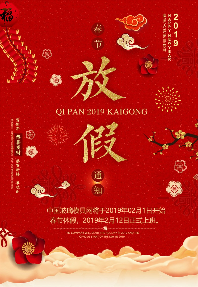 中國玻璃模具網2019年春節放假告知