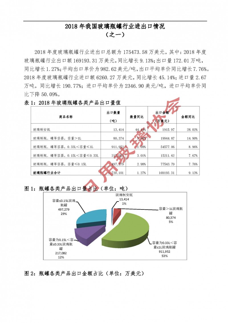 2018年我國玻璃瓶罐行業進出口情況(一)