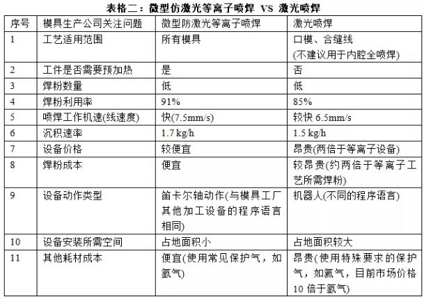 模具噴焊的常用工藝-等離子噴焊,國外近來取得新的突破,技術(shù)升級和功能增強,稱之為“微型仿激光等離子噴焊”,顧名思義,達到與激光噴焊完全一樣的效果(模具是否需要預(yù)熱,不影響瓶罐生產(chǎn)的美觀)。微型仿激光等離子噴焊,既幫助模具公司大大降低投資采購成本、長期維護使用成本,又增加設(shè)備適用范圍,更便于模具公司現(xiàn)有技術(shù)人員快速熟練掌握噴焊編程。