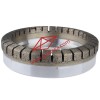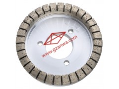 金屬結合劑金剛石砂輪, 簡稱金剛輪。是通過高溫高壓把銅粉與金剛石融合制作而成,金剛砂原料采用進口優質的,主要用于玻璃加工雙邊磨邊的1#粗磨輪,由于工作面呈鋸齒狀又叫做全齒金剛輪,齒狀的工作層在工作中能夠為排水排屑提供空間,降低工作面的溫度,壓力使得玻璃不會因為溫度壓力過高產生燒玻璃,崩邊的現象,從而提高砂輪的切削力耐磨性,產品具有耐磨,鋒利度好等特點,可代替創源的磨輪來使用,雙邊1#輪常用175直徑100#的磨輪,也可根據客戶實際加工要求選擇搭配合適的磨輪。